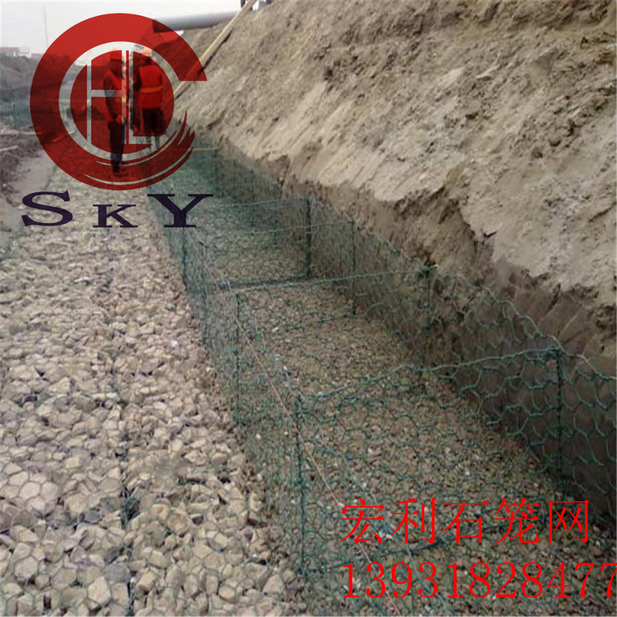 石籠網由耐腐蝕、高強度、有延展性的低碳鋼絲或涂塑PVC/PE的鋼絲用機械編織而成。其直徑隨工程設計要求而變化。通常2.0-4.0mm之間,石籠網鋼絲的拉伸強度一般在350~500N/mm2,金屬涂層的重量一般在245g/m2以上,石籠網選用組裝辦法,蓋板,邊板,端板,底板單獨出產組裝成網箱,網箱全部邊絲均選用粗絲加強石籠網的強度。近些年來,石籠網的表面處理有很多不同的類型,經常使用的鍍鋅石籠網、包塑石籠網、高爾凡石籠網等各種石籠網表面處理方式。根據石籠網材質和表面處理的不同,造成了各種石籠網使用環境的不同,而且防護效果會更加不同。石籠網主要用作河道、岸坡、路基邊坡、海岸護坡等工程。石籠網具有一定的柔韌性,對地面適應好的特點。石籠網既可防止河岸遭水流、風浪侵襲而破壞又實現了水體與坡下土體間的自然對流功能,達到生態平衡。石籠網面上拋撒土壤,可以種植綠色植被,坡上植綠可增添景觀綠化效果。